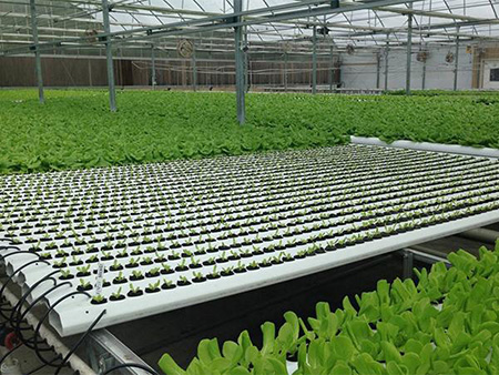 The deep flowing technique hydroponic system puts roots of crops into a nutrient solution rather than using a host material to make raised beds, which is free from outside influence and stable. It is applicable in growing flowers, vegetables and fruits on a large scale.