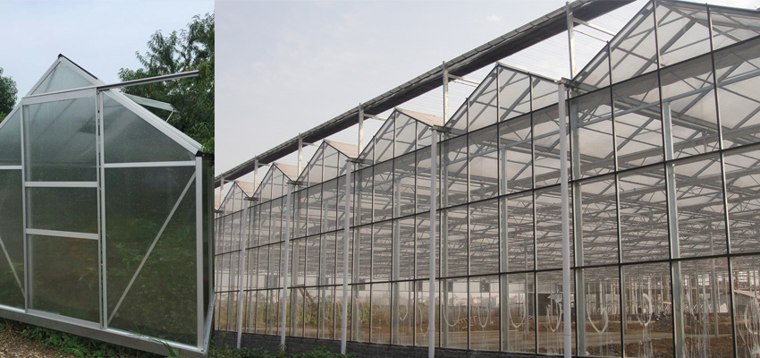 On the roof:polycarbonate sheets, glass, polyethylene film