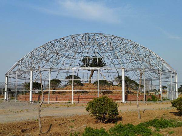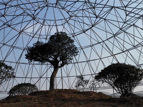 Our raised dome greenhouses feature an upside down bird’s nest design based on bionics principles. The structure is a hexagonal honeycomb that is lightweight but extremely strong. This type of greenhouse is great for large indoor arboretums and agritourism centers, scientific facilities, and much more.
